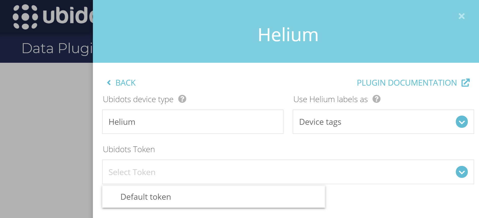 Under Ubidots Token, select the Token you wish to associate with this integration (we will just use Default token) and make sure Device tags is selected under Use Helium labels as: