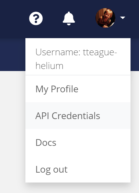 Now, click your avatar in the upper-right of your screen and select API Credentials:
