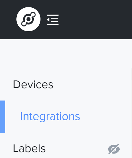 Now, let's move over to the Helium Console and create our Integration. Select Integrations from the menu on the left of the screen: