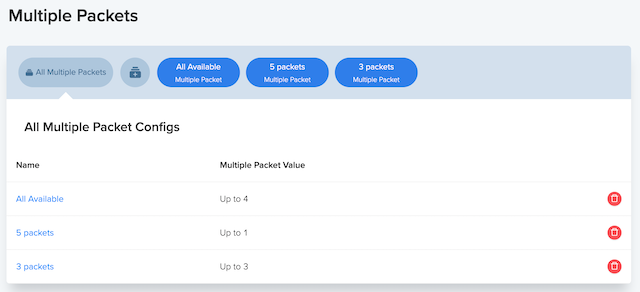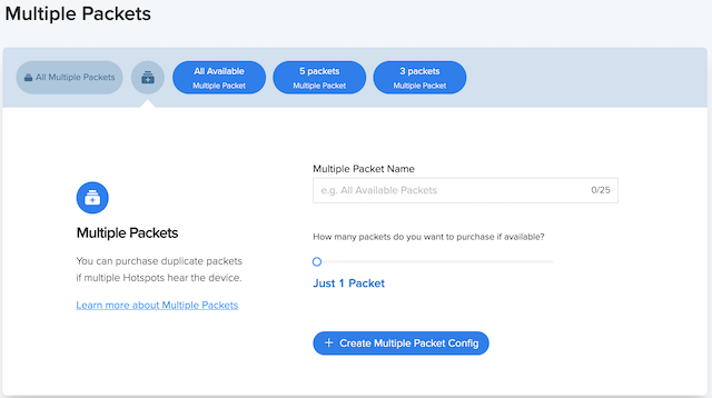 Packet Configurations allow users to specify settings that impact packet delivery and includes settings for both Multiple Packets and Preferred Hotspots.