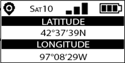 Once you have navigated to the GPS screen you'll next be monitoring this screen to validate that the device has a sufficient GPS fix (enough satellites are visible to accurately calculate its position and time). Make sure the device is located in a place where a good amount of the sky is visible. Once your device obtains a fix (this may take a few minutes), you will see a latitude and longitude show as well as how many satellites are visible. It's best if six or more satellites are visible. You can now navigate to the Packet Count screen by again pressing the same Push Button 2, once if the display backlight is on, and twice if it is off.