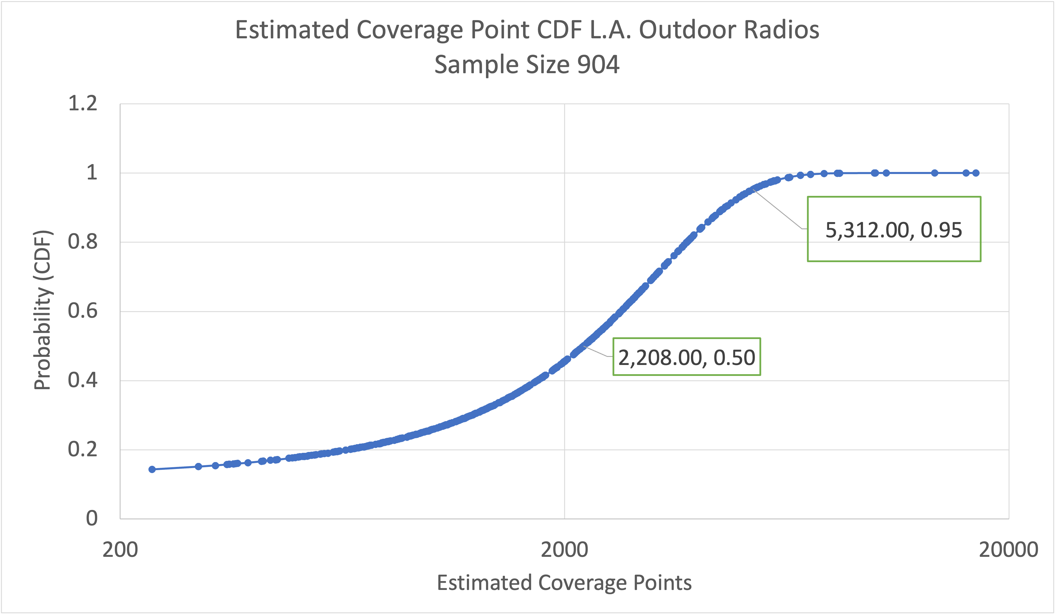Cumulative distribution function of Outdoor Radio estimated coverage points for 904 Radios in the L.A. market area.