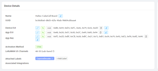 Now let's head back to the Helium Console and login to your account. Once logged in select the "Devices" item on the left, then select the target device previously created. Scroll down a bit on the device page and you should see something similar to the screenshot below.