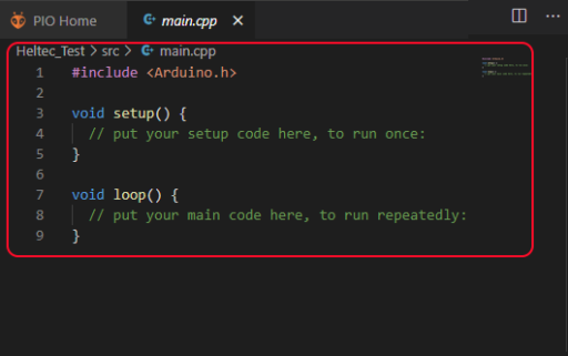 If you are familiar with developing within the Arduino IDE, main.cpp is much the same as the Arduino *.ino. It also contains default setup() and loop() functions.
