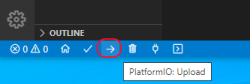If the build process is completed successfully, upload the binary to the target device via the "Upload" (right-pointing arrow) button found on the status bar