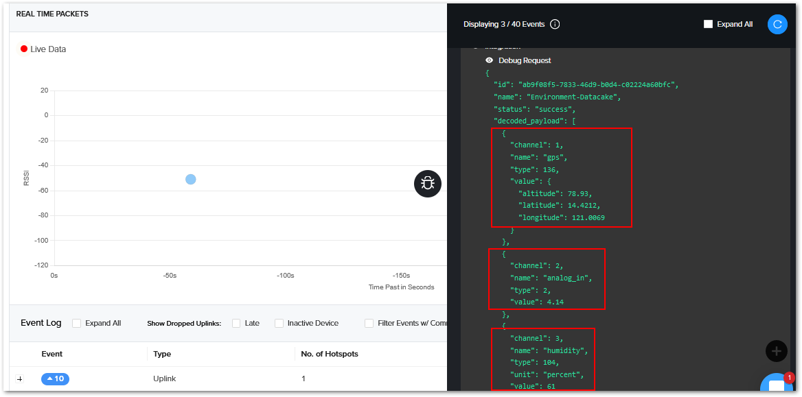 If you take a look at the Helium console, you will also see the join request packets both in the graph and event log. Your node is now a part of the Helium Network.
