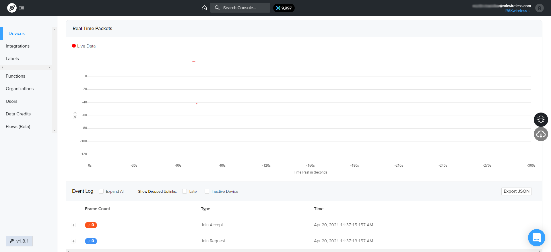 If you take a look at the Helium console, you will also see the join request packets both in the graph and event log. Your node is now a part of the Helium Network.
