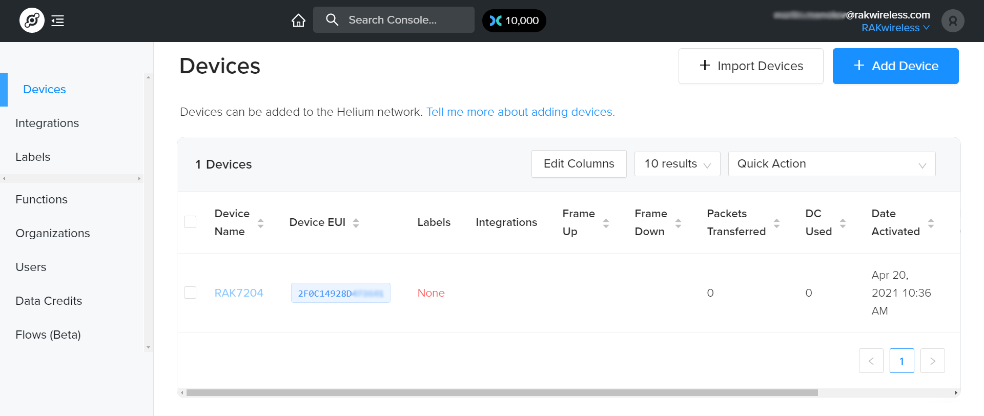 Helium has quickly become the most widespread LPWAN communal network with more than 27,000 devices deployed globally. All the RAKwireless node products are compatible with it and the process of adding a device to the network is intuitive and straightforward. This section will focus on giving a brief guide on how to connect the RAK7204 to the network console, assuming that there is a Helium Hotspot within range.