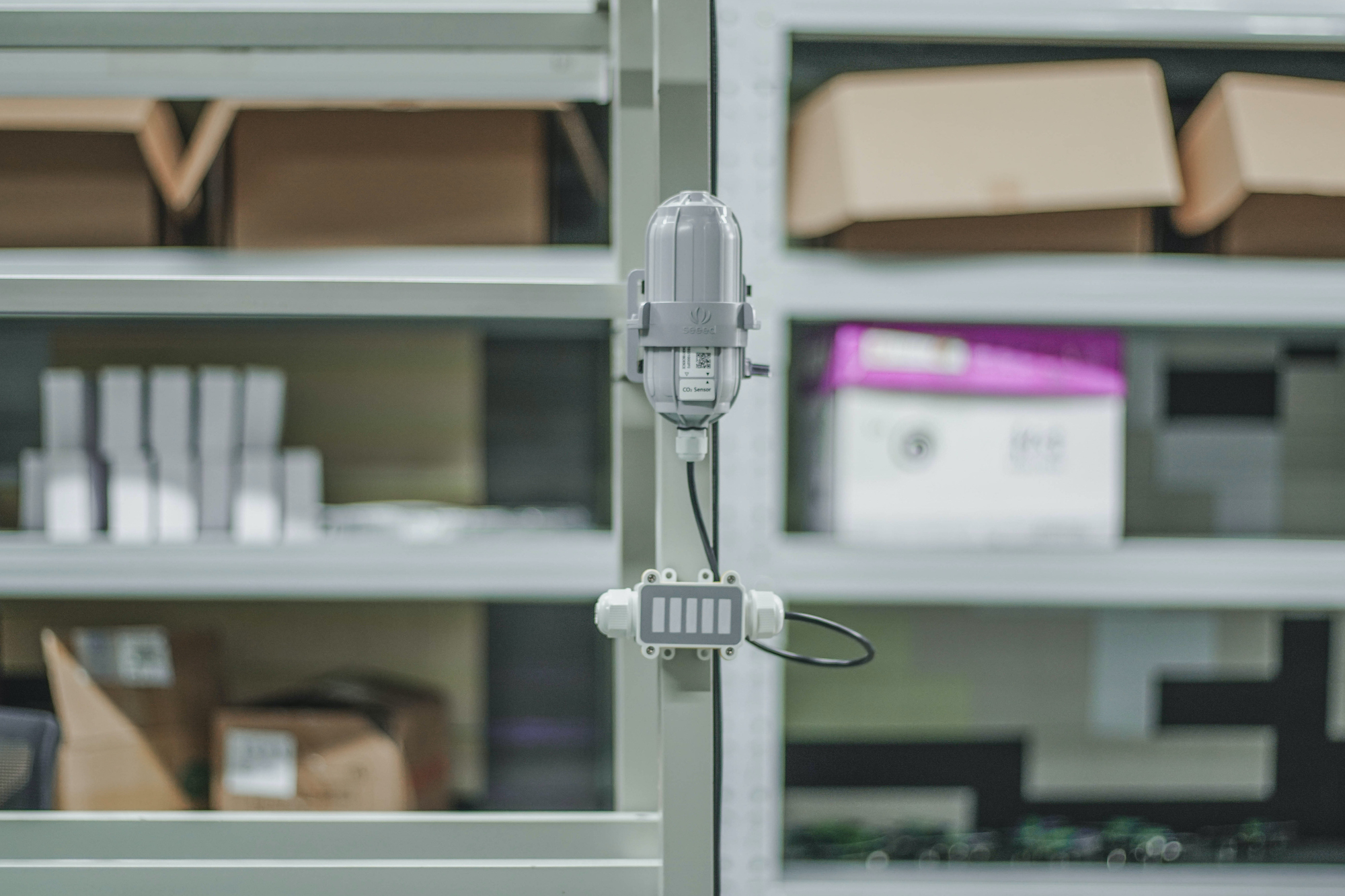 It measures levels of CO2 emission in the atmosphere, designed with an NDIR CO2 sensor and a custom battery. It's dustproof, optimal for use cases that need reliable data collection, even in dusted indoor environments such as chicken farms.