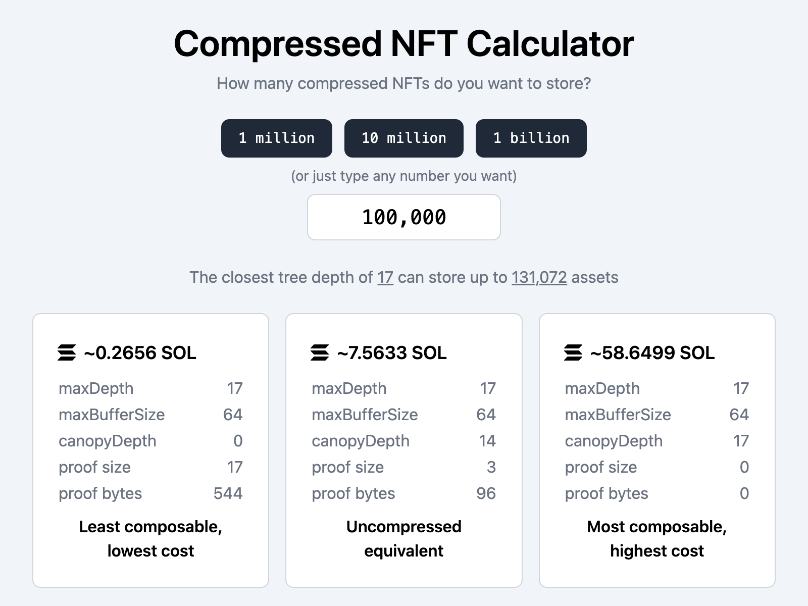 How many compressed NFTs do you want to store?field. - The