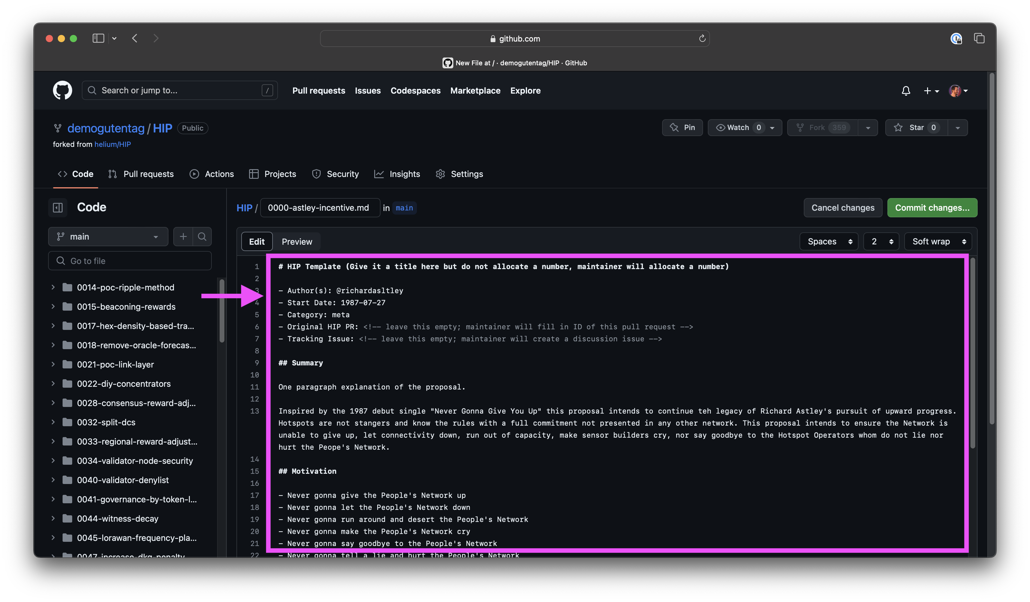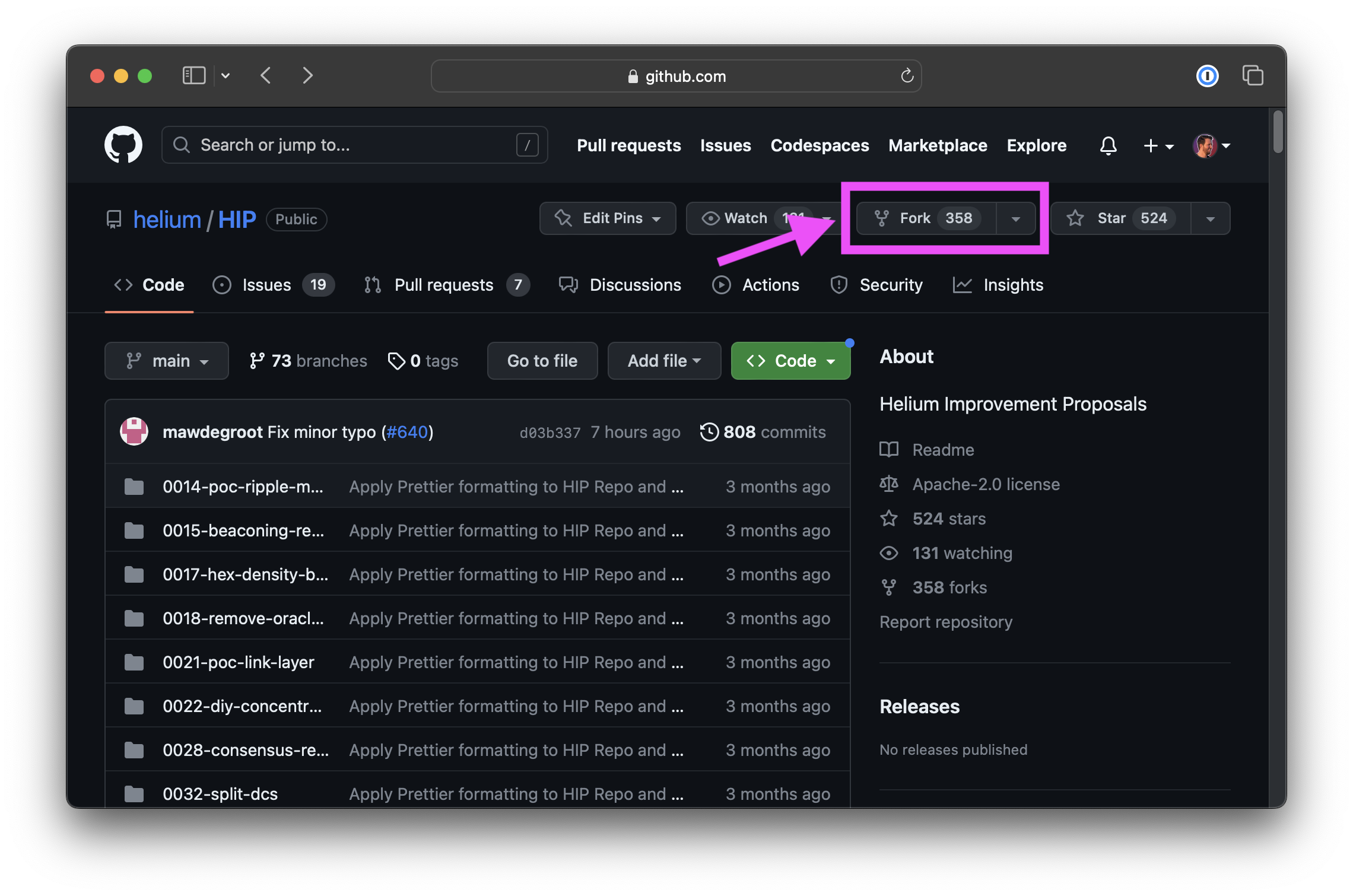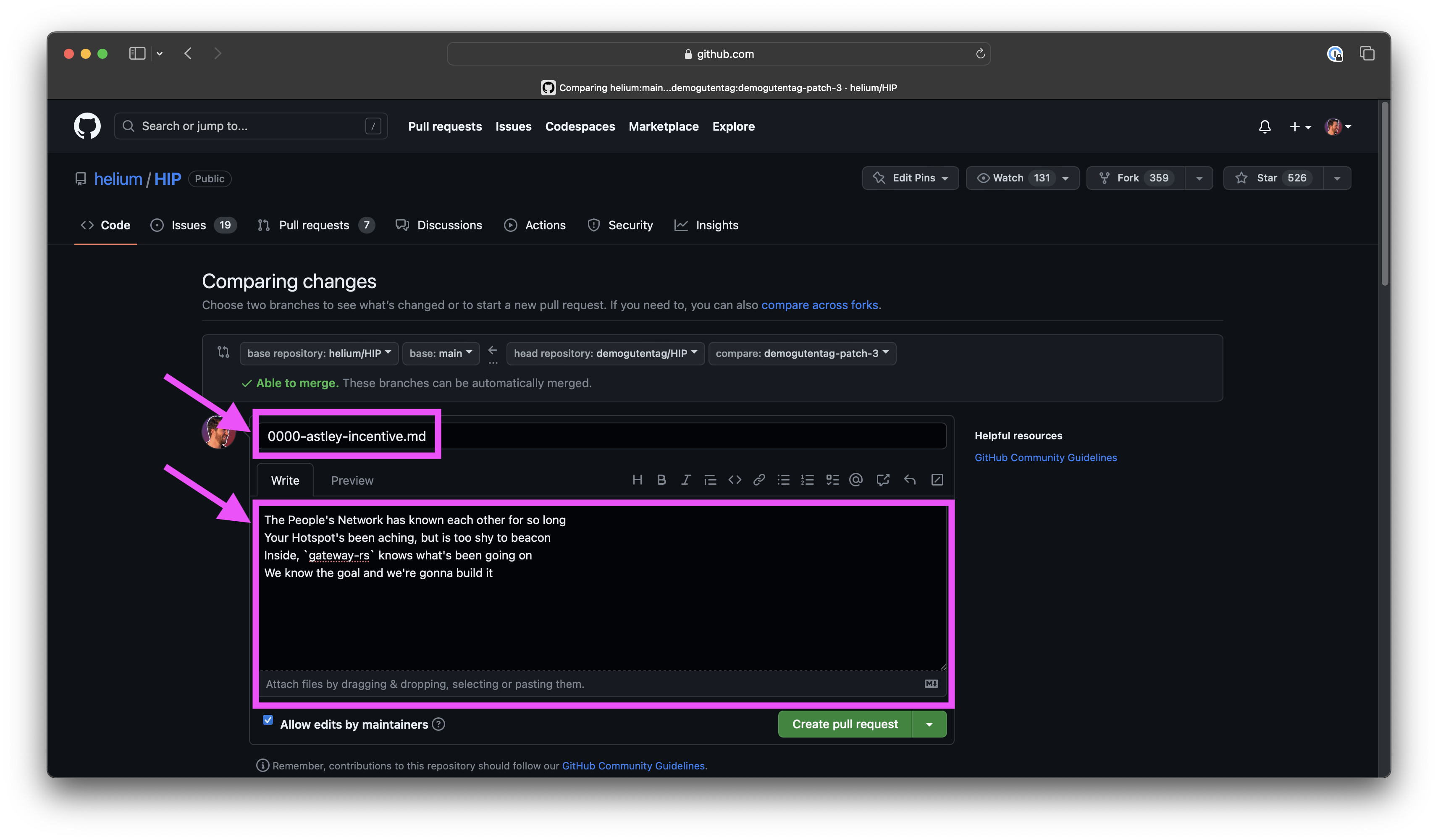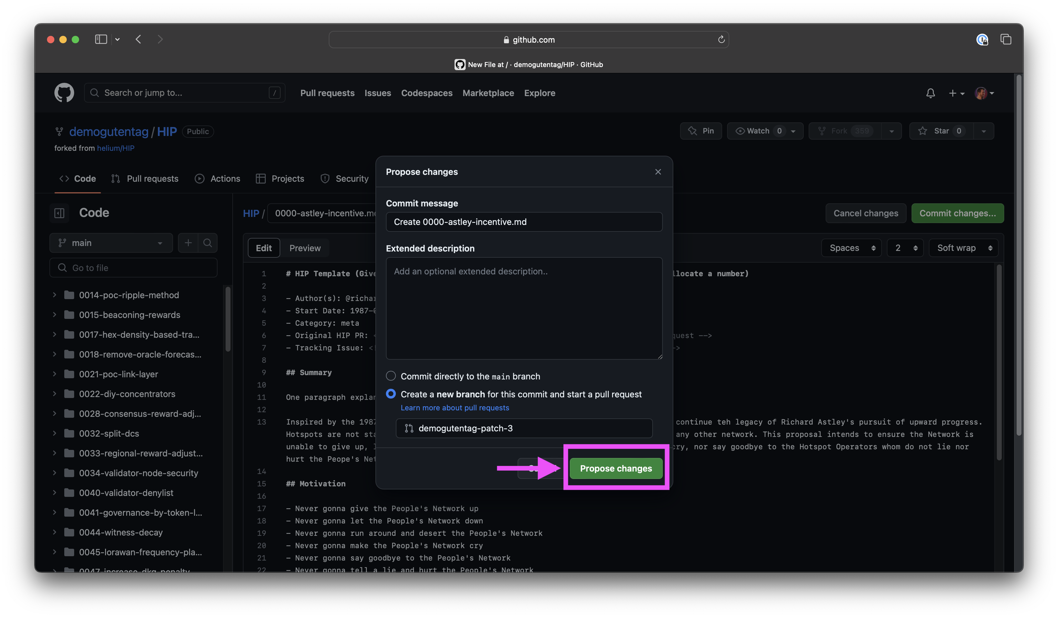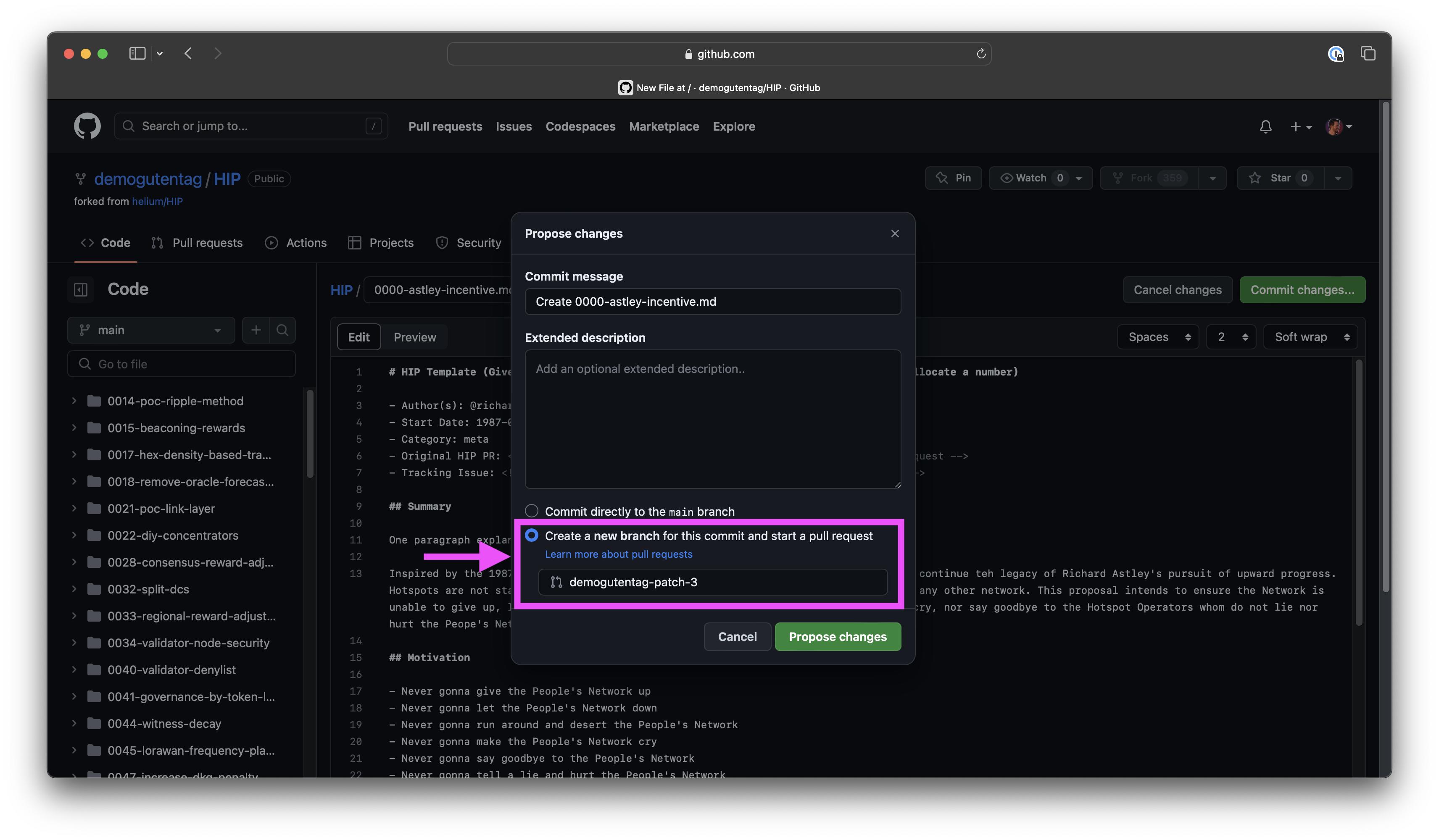 Step 5. View the newly created Pull Request in the main Helium HIP Repository.